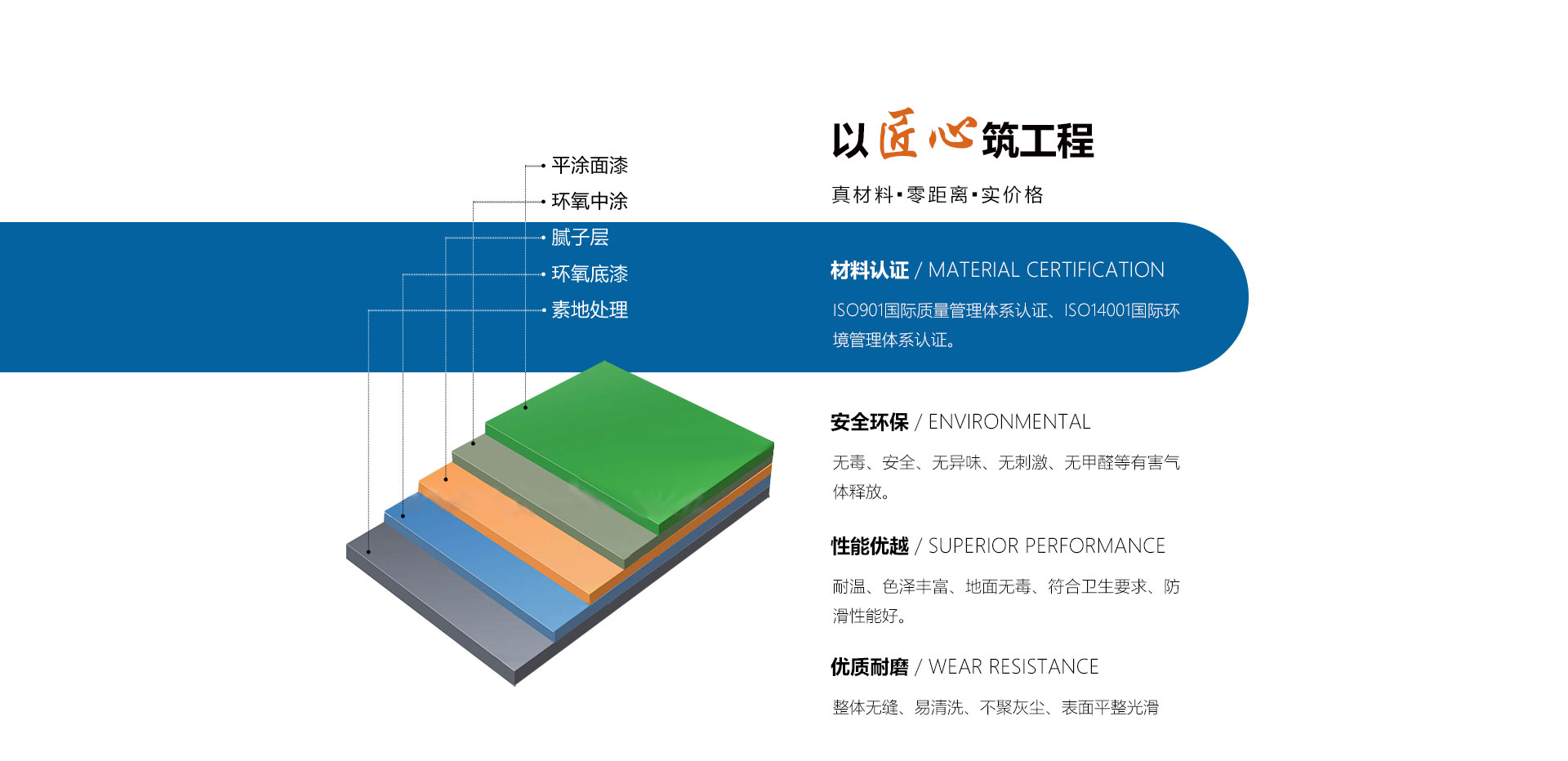 安徽世博裝飾工程有限公司成立于2009年,是一家以外墻涂料、工業地坪設計、施工和銷售為主要的專業性工程公司、是工業地坪施工的專業企業。公司設立了售后服務中心,用戶遍布全國大中小城市,一大批具有標志性的長期合作伙伴?!笆啦┕尽杯h氧地坪工程,受到了越來越多的不同行業用戶的好評及青睞。公司擁有一批經驗豐富的管理人員和專業的施工人員,以保障產品的成功應用,用較小的代價獲得理想的效果,尤其在地坪涂裝方面優勢突出。而且以好的品質管理模式,向客戶提供“獨具魅力”、“性能優異”、“質量穩定”的產品。公司主要產品包括:平涂型環氧地坪、環氧砂漿地坪、環氧樹脂自流平地坪、滾涂型防靜電地坪、自流平防靜電地坪、復古地坪、水性環氧樹脂地坪、彩色透水混凝土地坪、壓花壓模藝術地坪、金剛砂耐磨硬化地坪、混凝土密封固化劑地坪、乙烯基酯重防腐地坪、GEP 標準型地坪、彈性PU運動場地坪、塑膠跑道地坪,PVC橡膠地板、停車場地坪、無震...